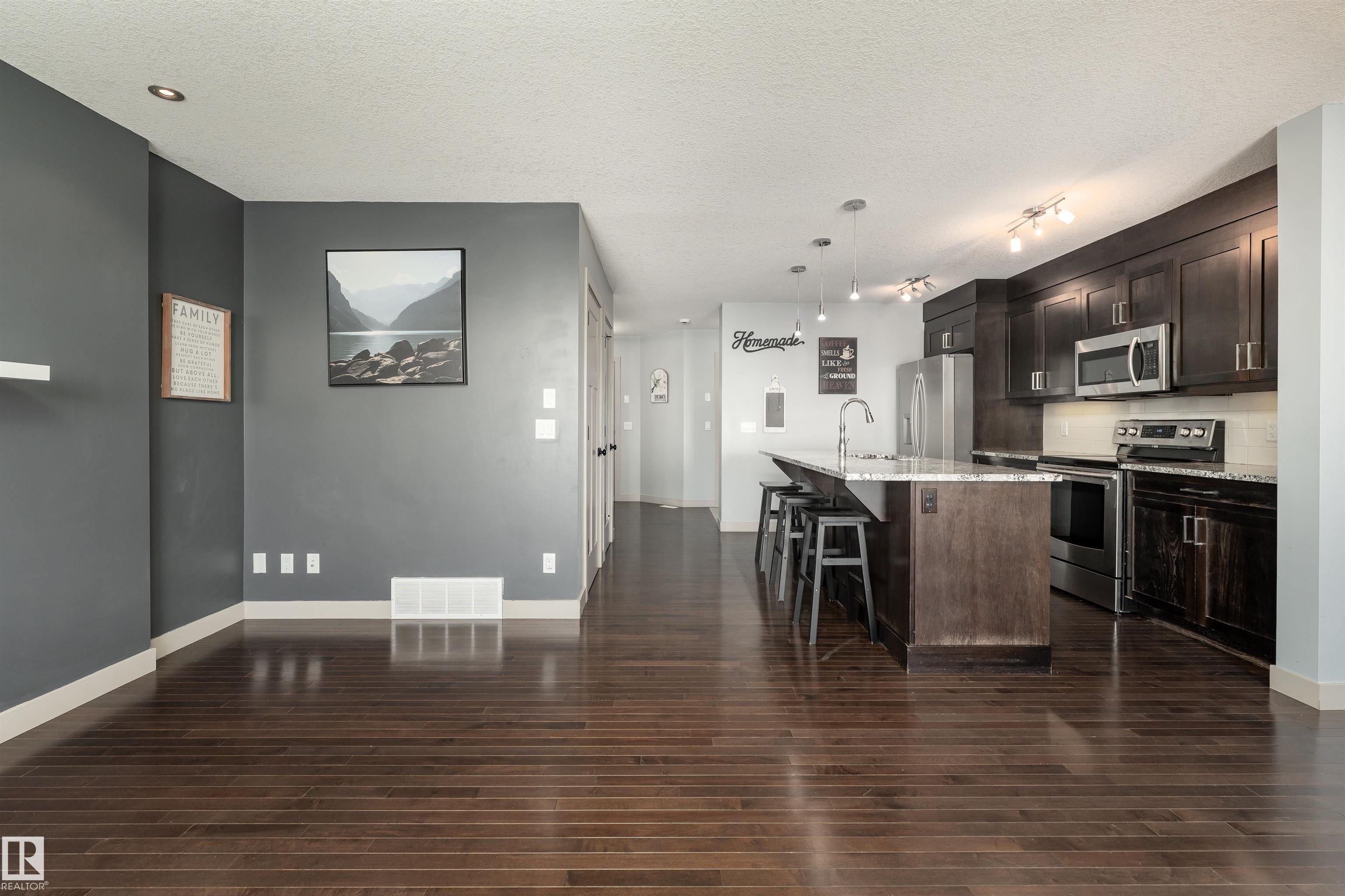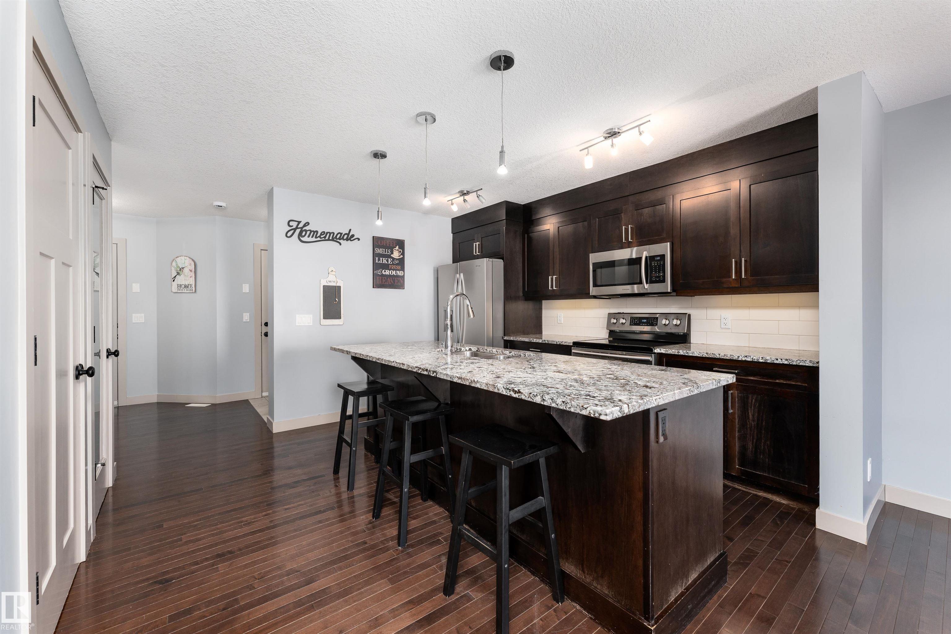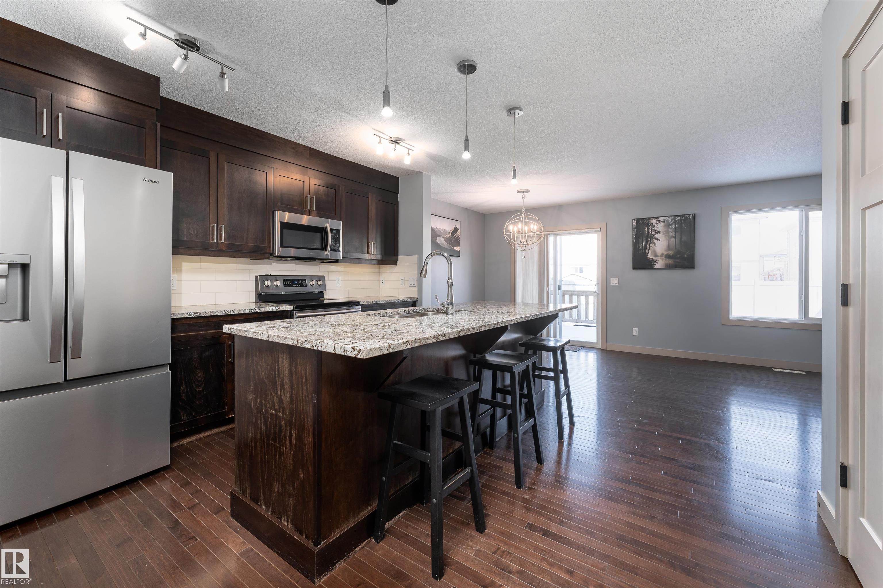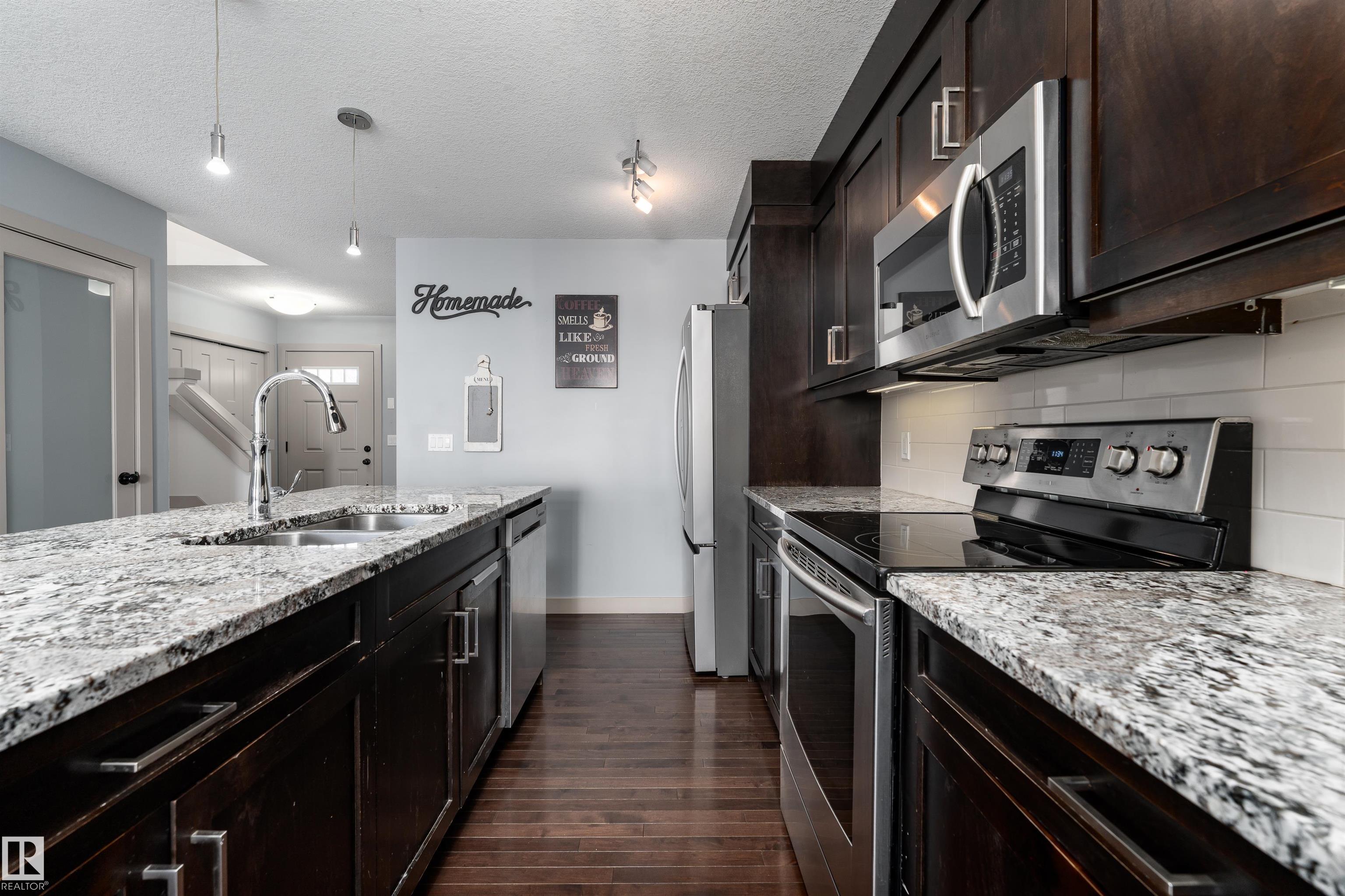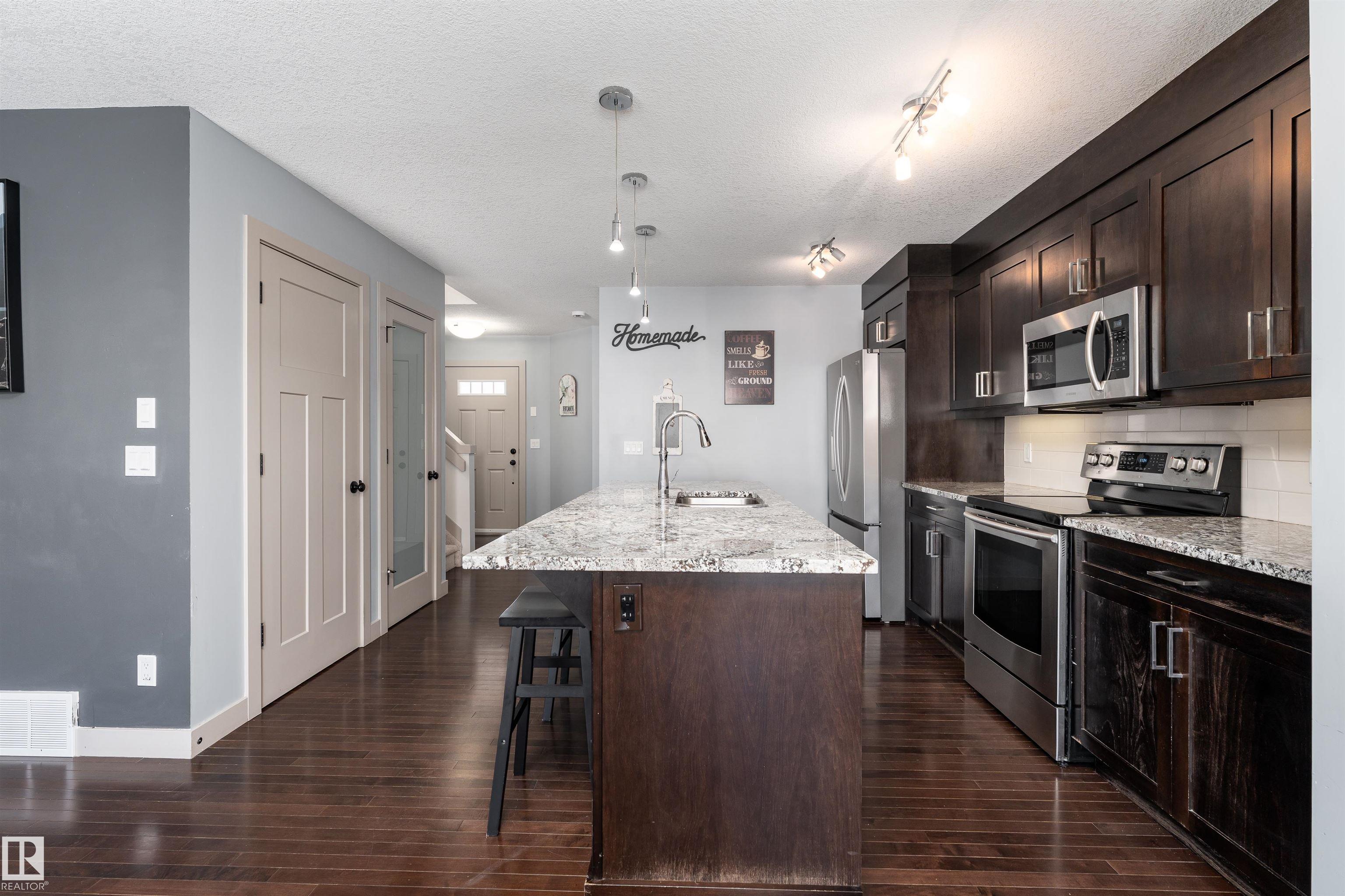 Beautifully upgraded half duplex on a fully landscaped and fenced lot, available for immediate possession! The main floor offers a bright open-concept layout featuring a stylish kitchen with abundant upgraded cabinetry, gorgeous granite countertops, a generous island with sink and dishwasher, and upgraded stainless steel Samsung appliances. The inviting living room showcases a cozy gas fireplace and rich hardwood flooring, while the dining area features upgraded lighting and patio doors leading to the fully...