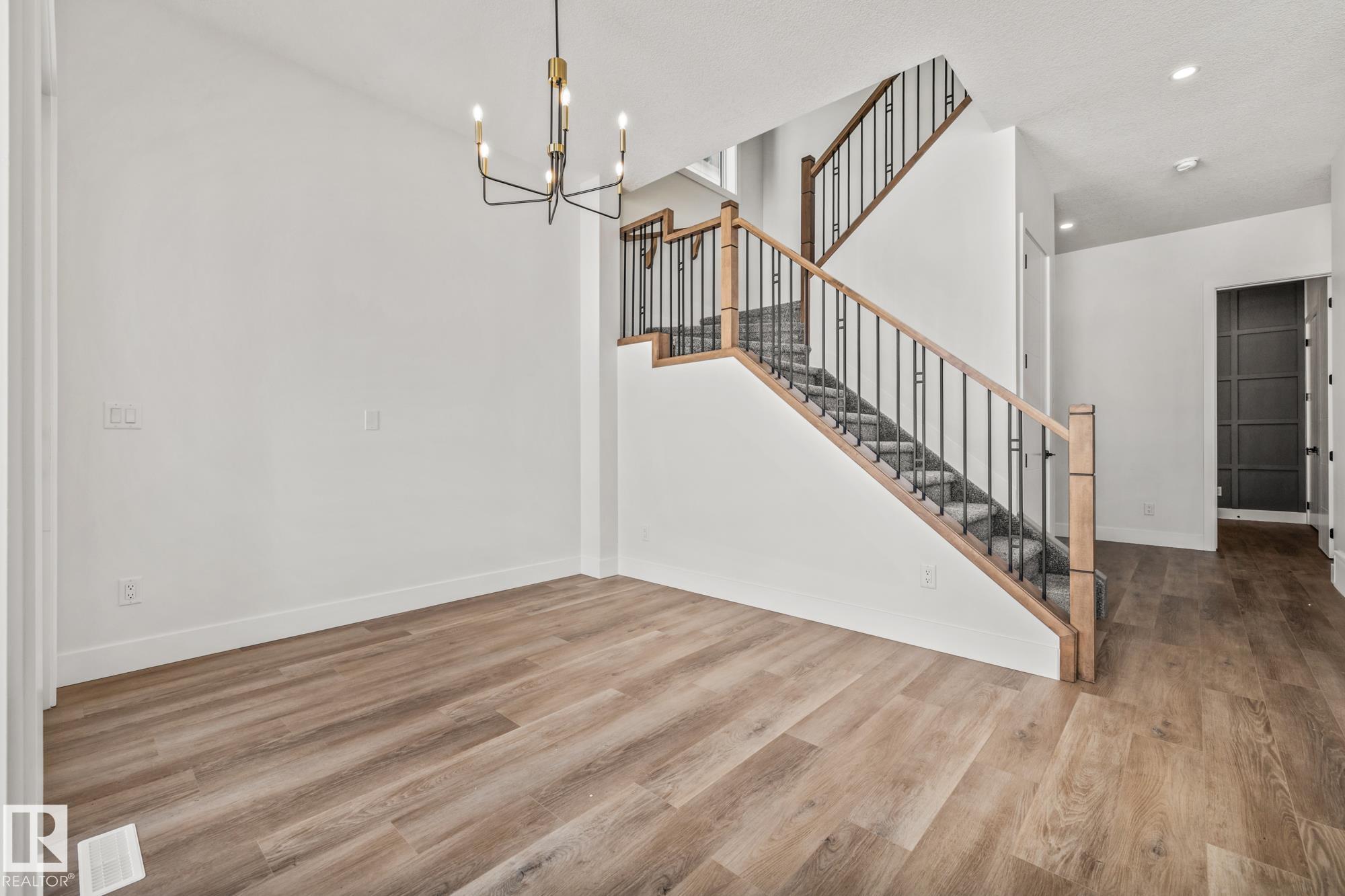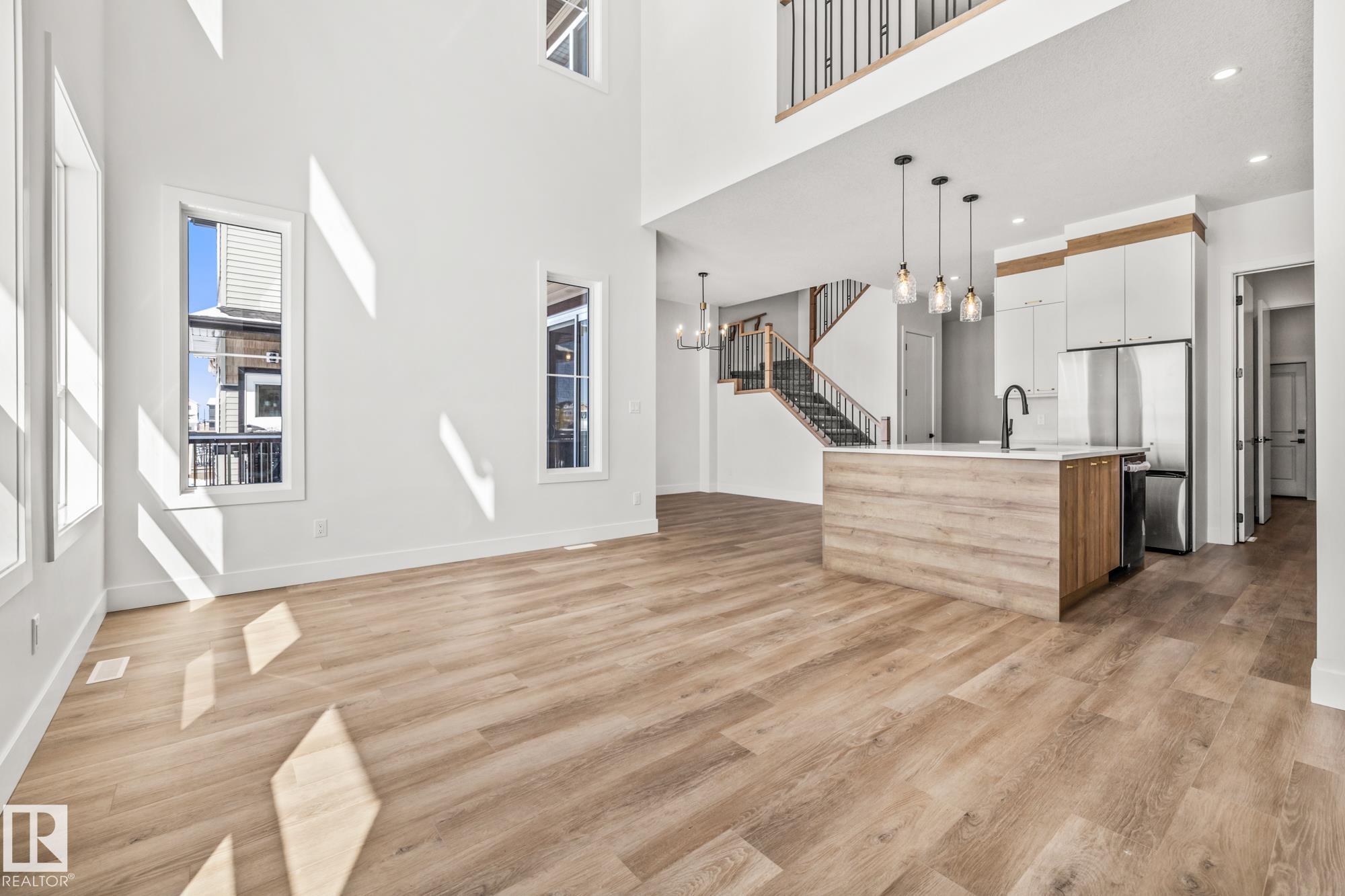Welcome to this beautifully designed 4 bedroom, 3 bathroom home featuring a walkout basement and a layout that perfectly balances style and functionality. As you step inside, you’re greeted by a spacious front bedroom, ideal for a home office or flex space, alongside a convenient 3-piece bathroom, while the mudroom offers direct access to the double attached garage for added everyday ease. Down the hall, the home opens into the heart of the space: a stunning modern kitchen with sleek finishes that flows sea...